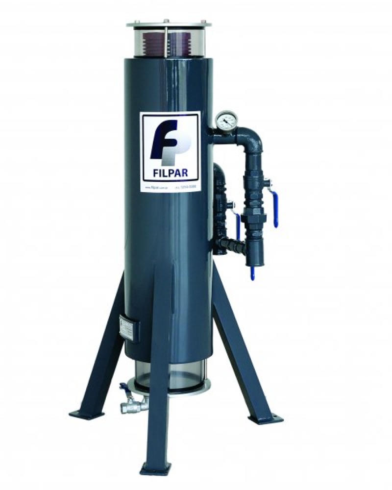 Composto por corpo em aço carbono, sistema “by-pass” para desvio momentâneo de fluxo, visores de policarbonato de alta resistência, entrada e saída de 1 ½”, elementos de celulose com resina fenólica, tampas em aço carbono, dreno na parte inferior e vacuômetro para indicar saturação dos elementos filtrantes.